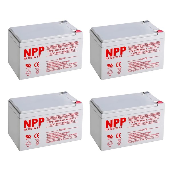 NPP HR1251W (F2, 4Pcs) 612Watts 12V 51Watt/Cell AGM Sealed Lead Acid High Rate Battery, Replace 12 Volt 14Ah 15Ah Flame Retardant UPS Battery for Fish Finder, Scooter, Security System and Solar System