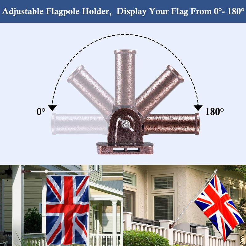 - 【Multi-angle Display Flags】The adjustable flagpole holder makes it easy to display your flag perfectly from 0°- 180°. This mounting unit is truly the perfect flagpole hardware while it fits most 1-inch diameter wooden or metal flagpoles.