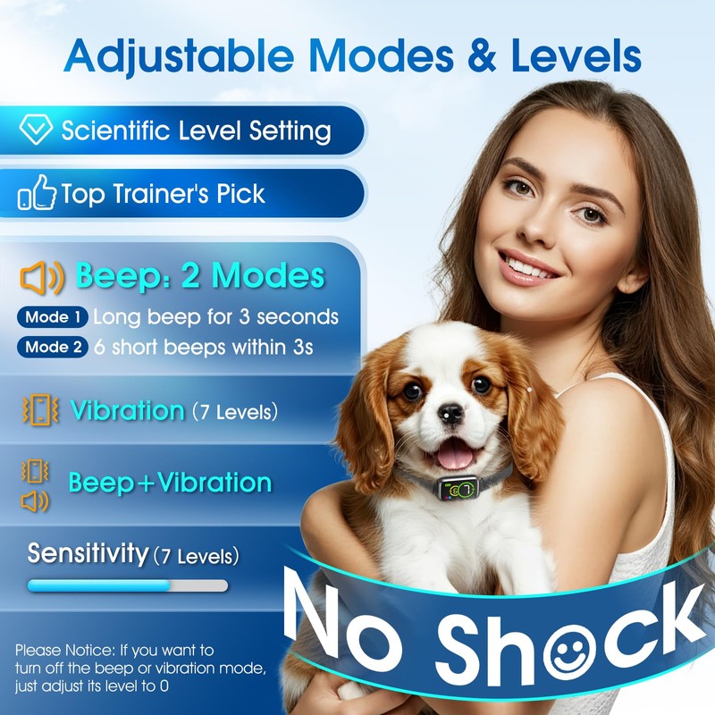 - 【2024 SMART ANTI BARKING COLLAR,AN EFFICIENT WAY TO STOP BARKING】NQQHNN Bark Collar has 4 humanized & effective modes, Beep(2 modes), Vibration(1-7 levels), Beep + Vibration and Auto-Protection mode. The scientific level settings and advanced chip enable the dog bark collar to capture the dog's barking more sensitively and release signals quickly, thus effectively preventing dogs from barking. NQQHNN bark collar for small dogs makes every dog a good dog and brings peace to every home