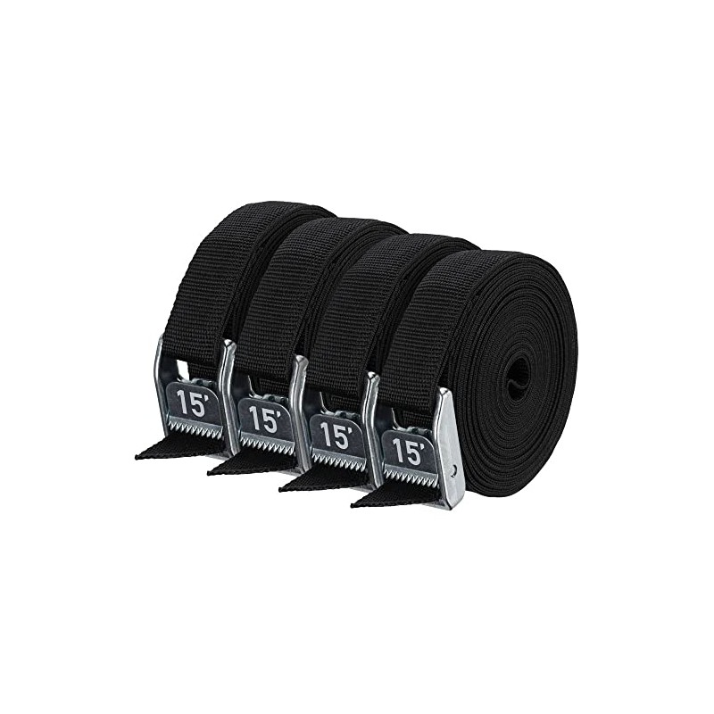 NRS 1" Heavy Duty Tie Down Strap 4 Pack-StealthBlack-15ft