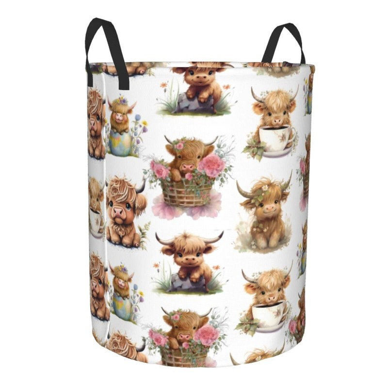 NSDGGE Cow Laundry Hamper Collapsible Large Laundry Baskets with Easy Carry Handles Freestanding Oxford Cloth Waterproof Clothes Hamper Storage Basket for Clothes Organizer 19.6" x 15.7"