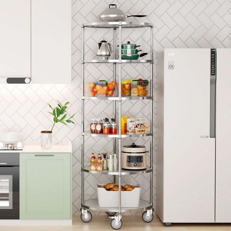 - Maximize Space with Versatile Round Shelving: Transform unused corners or center spaces into valuable storage areas with our 6-tier NSF round shelving unit. Ideal for optimizing space in kitchens, offices, garages, and more, this innovative design offers both functionality and style.