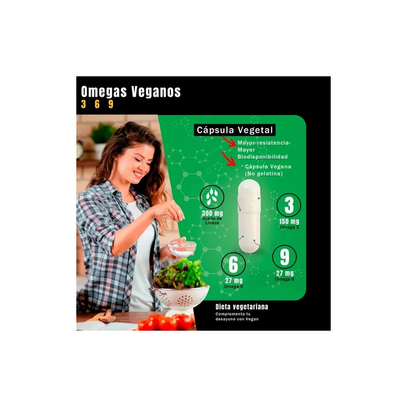 VEGAN – EL SUPLEMENTO QUE CADA VEGETARIANO Y VEGANO NECESITA: Los omegas 3, 6 y 9 participan en diferentes funciones metabólicas importantes. La mayoría de los omegas vienen de aceites, semillas o peces. Usamos el aceite de linaza como nuestra fuente principal de omegas