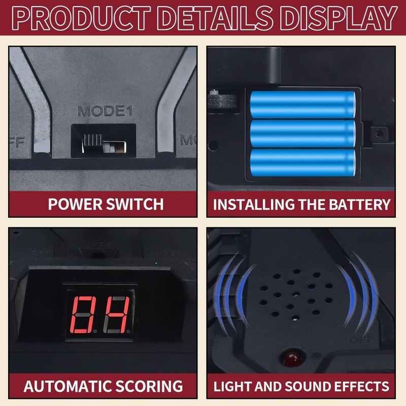 - [Digital display design] The children's toy target is equipped with a digital display, and the sound prompts when the target is hit, which can clearly display the hit position and score, making it convenient for users to accurately record and compare. This mobile target is suitable for various Different types of shooting training and competitions to meet users with different needs and skill levels.