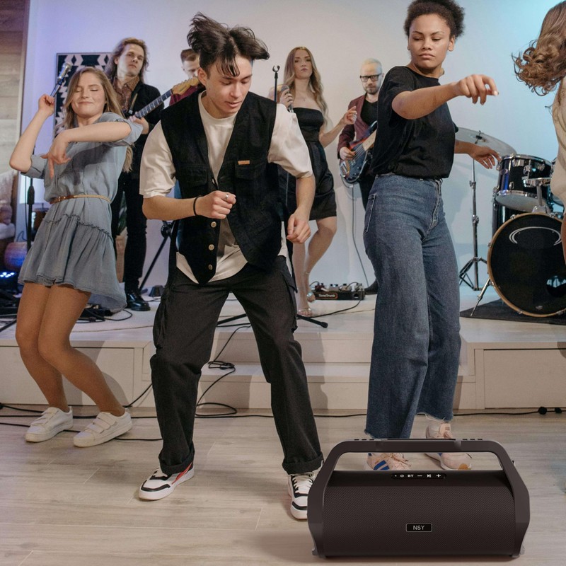 - Bluetooth 5.3 & True Wireless Stereo Technology: Bluetooth v5.3 enhances NSY-PB01 speaker connectivity, reduces power consumption, extends battery life, improving overall connection reliability. It also maintains the extended range (up to 100 ft) and improved data transfer rates (up to 2 Mbps), making it suitable for larger areas (backyard, beach, camping, etc..) and high-quality audio streaming. TWS Tech enables two NSY-PB01 indoor outdoor portable Bluetooth speakers to operate completely wirelessly while providing quality low latency stereo sound, allowing users to enjoy high-quality stereo sound without the hassle of cables.