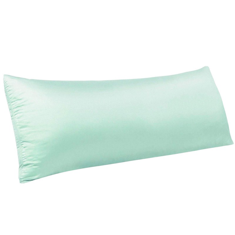 NTBAY Zippered Satin Body Pillow Pillowcase, Silky Slip Cooling Body Pillow Cover, Long Side Hidden Zipper, 20x54 Inches, Cyan