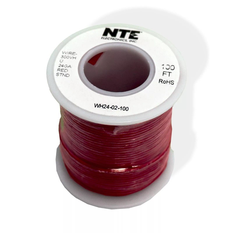 NTE Wire Hookup 24 Gauge 100 ft stranded red coating 1702402RD-100P