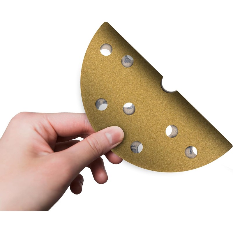 - The set contains 10 pieces of P150 grit 15 hole sanding discs designed for all sanders available on the market with a Velcro working disc diameter of 150 mm and 14+1 dust extraction holes.