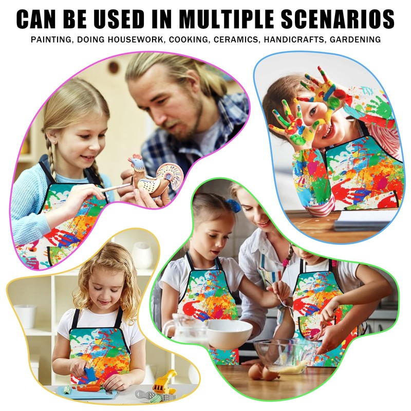 - Adjustable size: with adjustable shoulder straps and an elastic drawstring on the back, this reusable painting apron kids is available in one size fits all for boys and girls aged 6 12 years, providing a comfortable wearing experience
