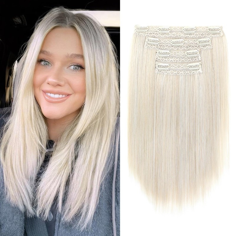 NTYNTY Hair Extensions, 14" Short Clip in Hair Extensions 4PCS Straight Blonde Hair Extensions Natural Soft Synthetic Hairpiece for Women - Pearl Blonde