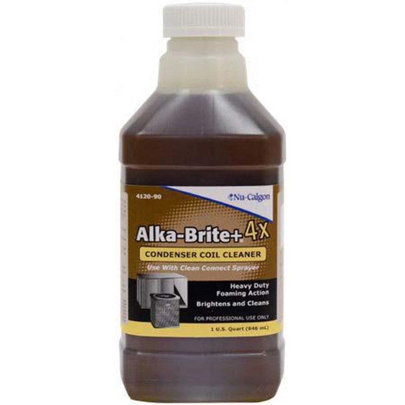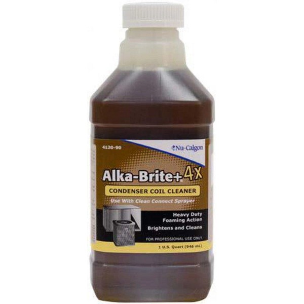 The Nu Calgon 4120-90 Alka-Brite Plus is a one quart alkaline-based coil cleaner designed to effectively clean air-cooled condensers.