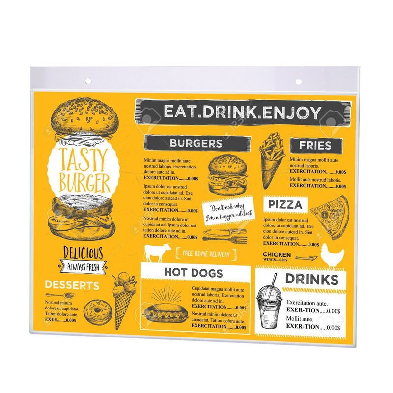 • Clear Plastic Sign Holder Secures documents 11" x 8 1/2" for wall mount display in landscape view