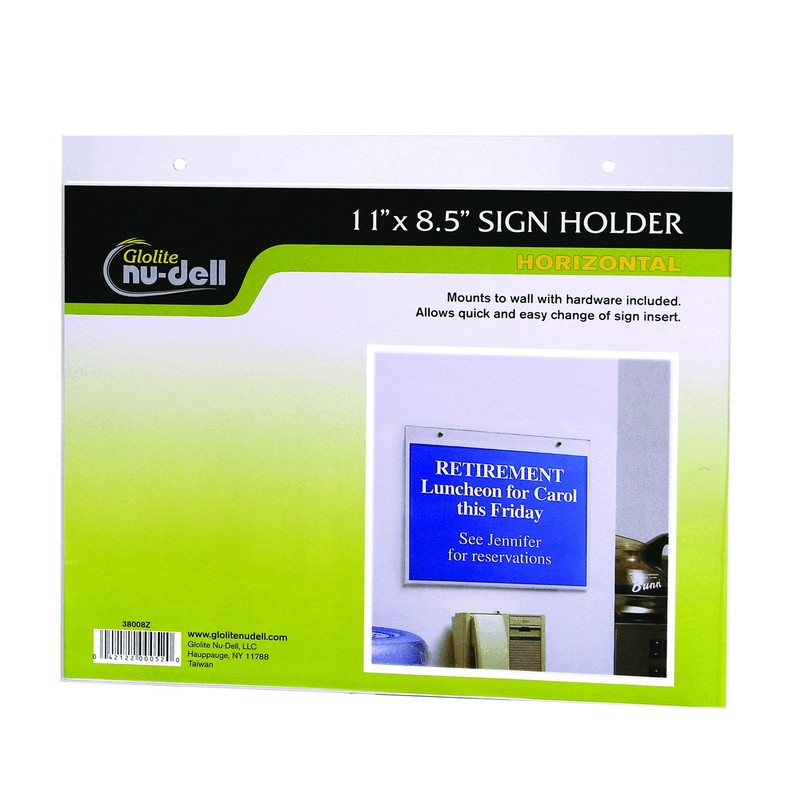 Nu-Dell 11" x 8.5" Horizontal Wall Mount Sign Holder, Clear