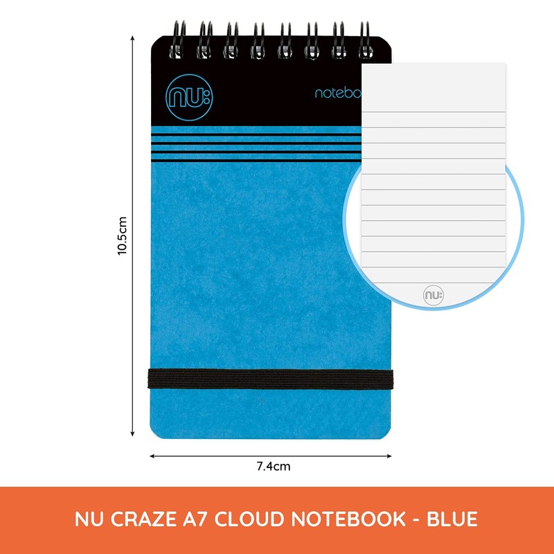 NU: Notebooks - Craze Cloud Range - A7 Blue Notebook - Spiral Bound - Stationery Notebooks - Lined Notepad - 110 Pages