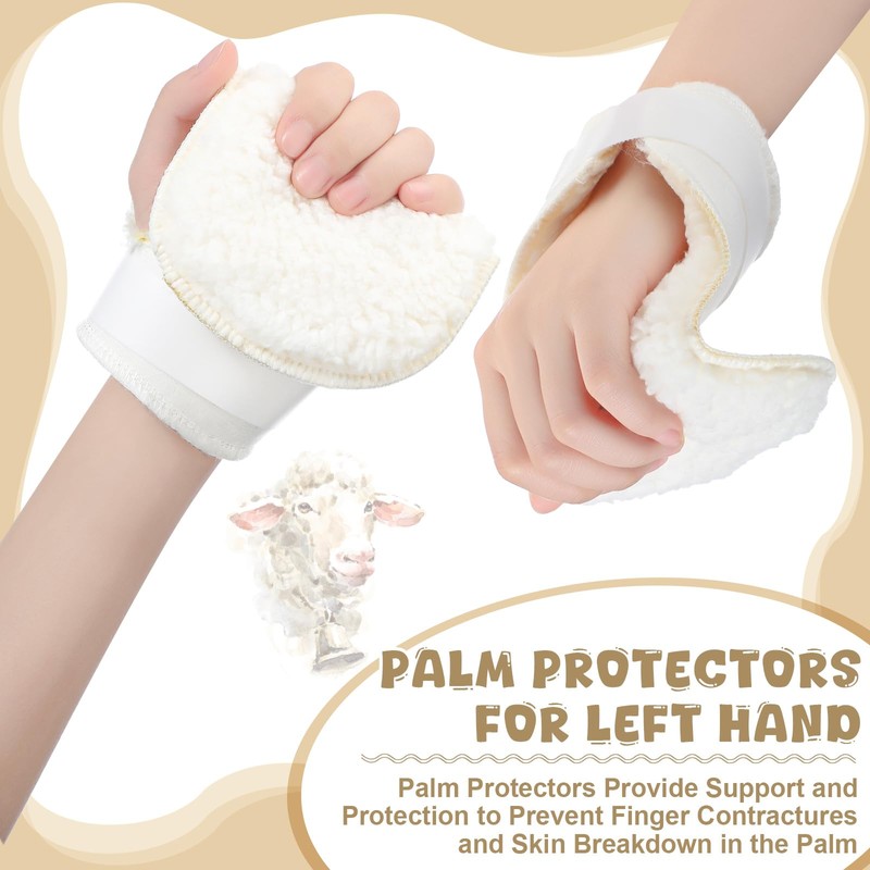 Features:Our palm protector is also an ideal gift for family and friends who need palm protection, so that they can feel your care and love.These Palm Protectors for the Left Hand come with elastic bands that adjust to all hand sizes, they promote open hand functioning, relieving finger discomfort, and helping to prevent skin damage between contracted fingers.Specifications:Material: foam, sherpaColor: beigeSize:Width: approx. 3.94 inches/ 10 cmLength: approx. 7.48 inches/ 19 cmPackage includes:4 x Palm protectors for left handNotes:Manual measurement, please allow slight errors on size.The color may exist a slight difference due to different screen displays.