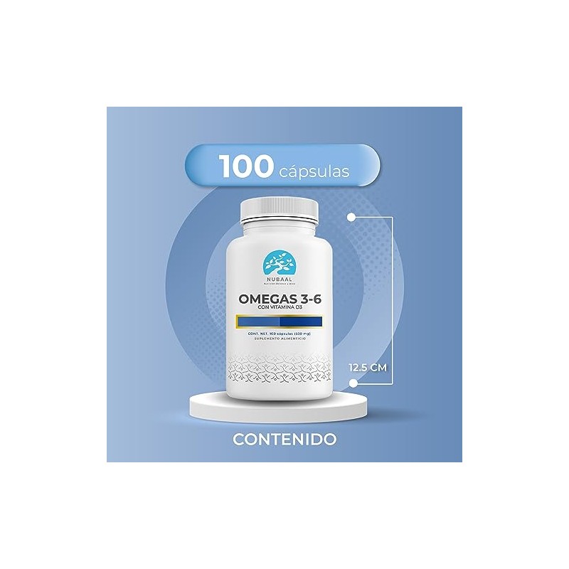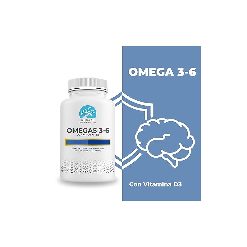 🌟 ⭐ Nubaal Nutrición, Balance y Alma Omega 3-6 de 500mg- Ácidos Grasos Esenciales - Ácidos Grasos DHA y EPA con Vitamina D3 - 100 Cápsulas ⭐ 🌟