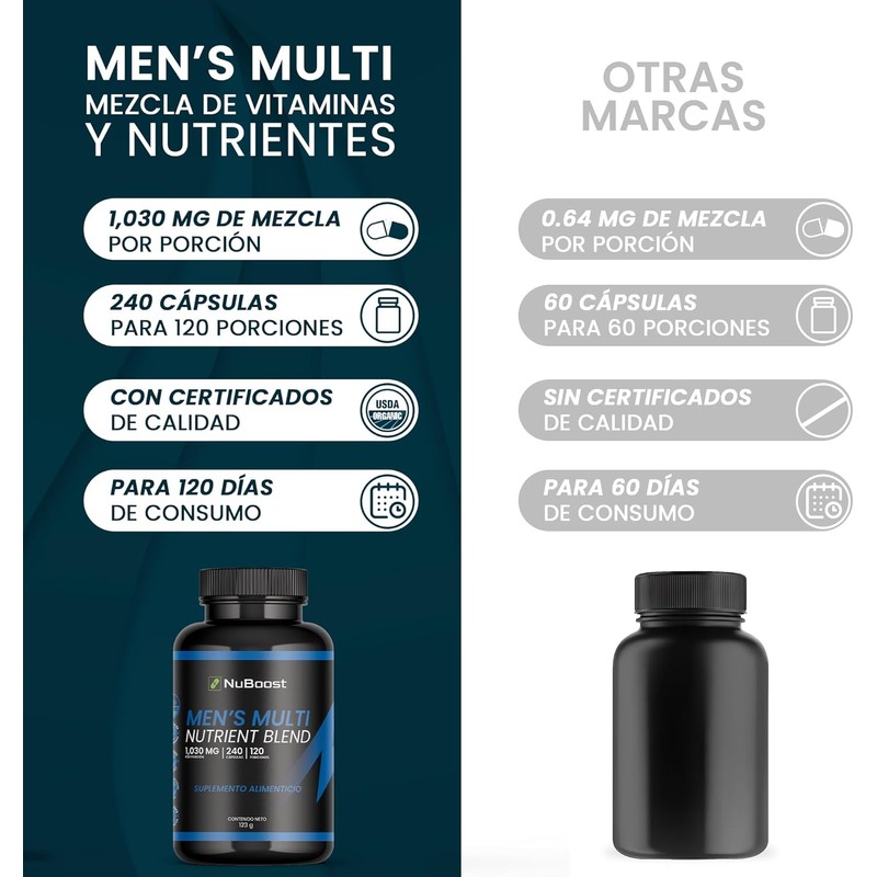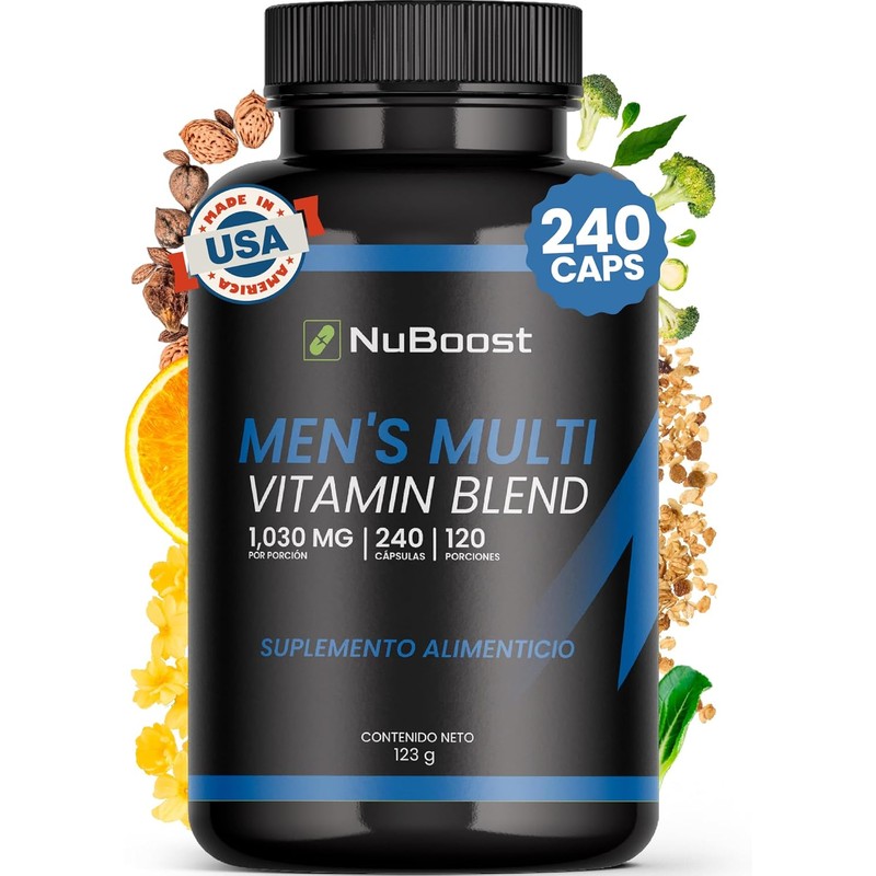 Nuboost Multivitaminico Hombre con Vitamina A, C, E, D3, K, Complejo B, Antioxidantes y Minerales - 980 mg 240 cápsulas - Mens Blend - Vitaminas para hombre - MADE IN USA