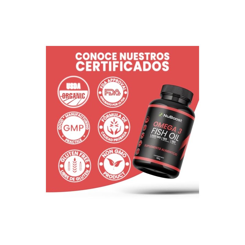 Nuboost Omega 3 1000mg - 180 cpsulas Aceite de Salmon Puro - Omega 3, fish oil EPA y DHA - HECHO EN USA (1)