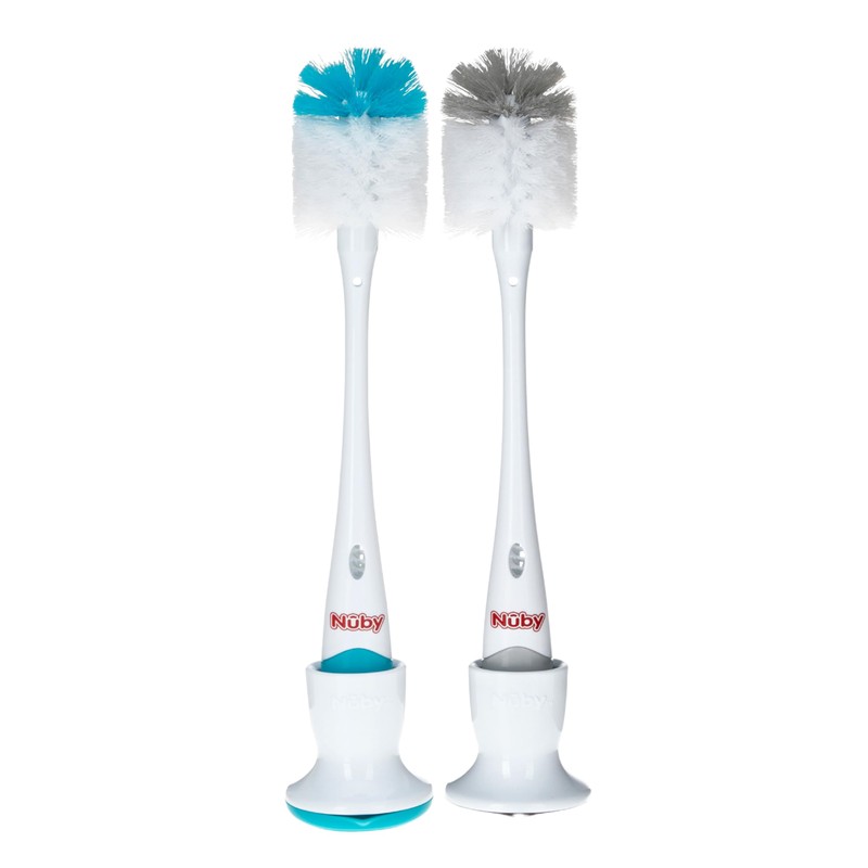 Nuby Bottle and Nipple Brush with Soft Bristles | 2 Pack: Blue & Grey or Pink...