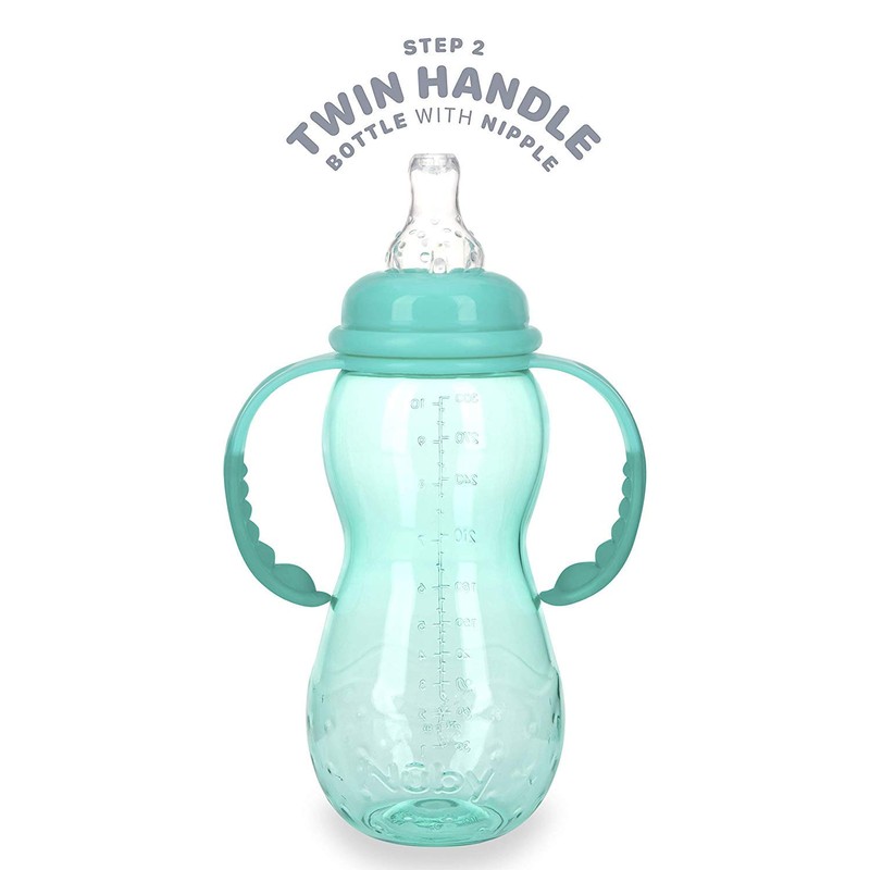 Nuby New 3 Stage Ultra Durable Tritan Grow with Me No-Spill Bottle to Cup, 10 Oz, Teal, 80387