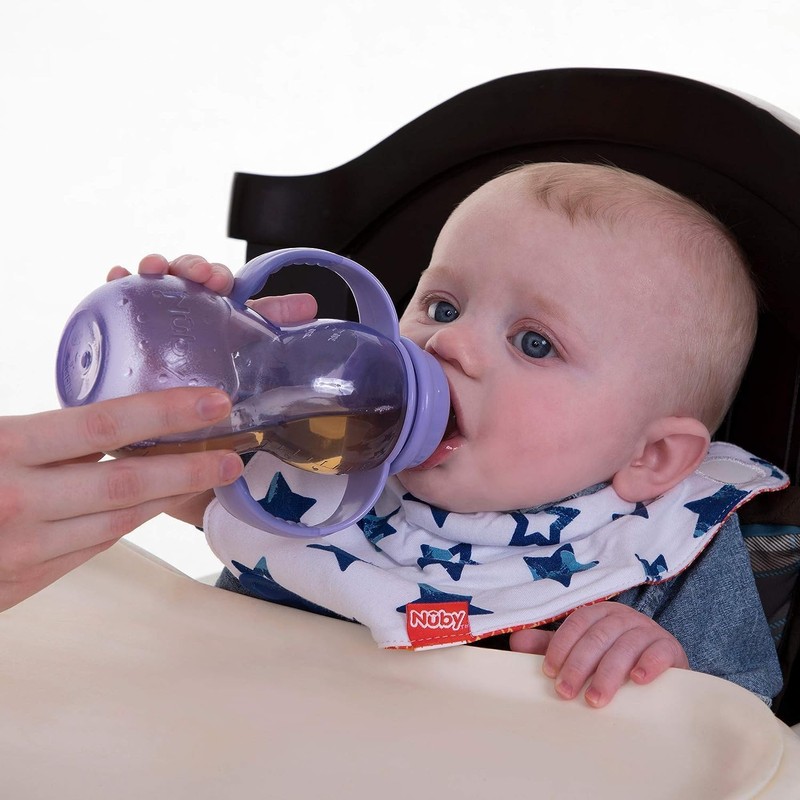 - As your child grows, their needs change. Nuby’s Non-Drip 3-Stage Grow Nurser supports an easy transition from bottle to cup. Have everything you need to help your child move up to the next step. Nuby’s Non-Drip 3-Stage Grow Nurser includes 1 bottle, detachable handles, nipple, and spout.