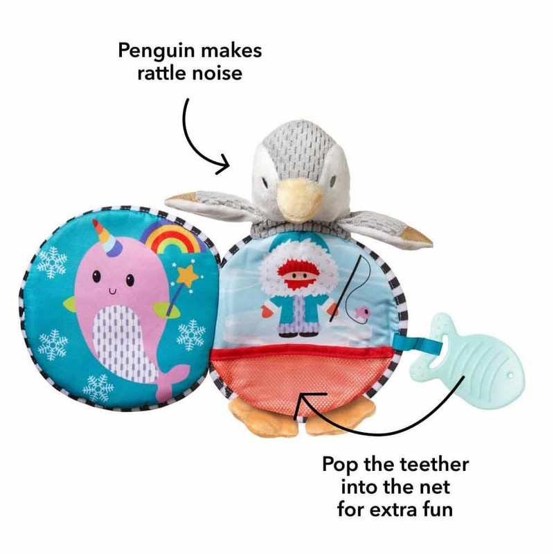 Nuby Soft Touch Story Book is an adventure story with Penguin and his friends. This soft fabric book has something new to explore on each page. The stimulating noises and texture make this a fun learning book.