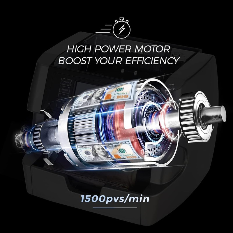 Money Counter Machine with Advanced CIS Technology: Features dual 200DPI Contact Image Sensors to scan and verify each bill with precision—just like human eyes. Compared to standard 50DPI CIS or IR tube systems, this technology improves counting accuracy and denomination recognition by 50%. Accurately processes brand-new, circulated, worn, or slightly torn banknotes with ease.
