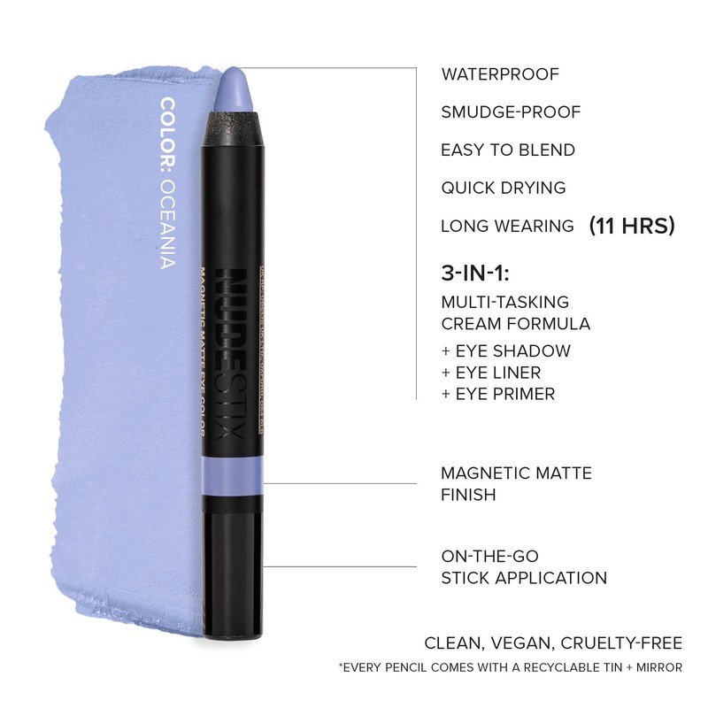 Nudestix Magnetic Matte Eye Color – 3-in-1 Long-Wear Cream Eyeshadow Pencil, Eyeliner & Primer | Waterproof, Budge-Proof Matte Finish | Vegan & Cruelty-Free Eye Makeup, Shade: Oceania