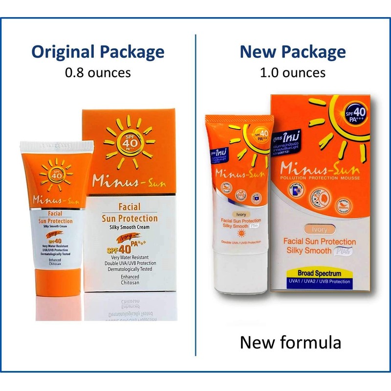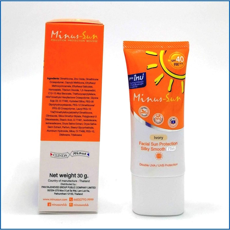 Minus (Sol) Sun SPF40 PA+++ Ivory (New Formula x 1 Ounces) Facial Sun Protection Silky Smooth Plus with Broad Spectrum UVA1 UVA2 and UVB Protection