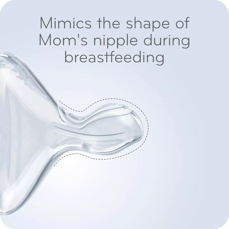 - Nipple mimics the shape of mom's nursing nipple during breastfeeding