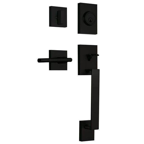 Nuk3y Haven Modern Handleset Front Door Entry Handle and Deadbolt with Reversible Inside Lever Trim (Square Hulk Lever Trim, Matte Black)
