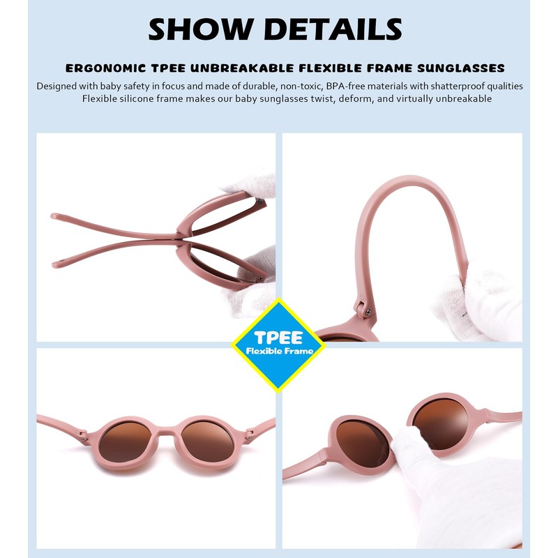 - ADJUSTABLE STRAP – Newly upgraded skin-friendly connecting strap, suitable for most of the baby's head shape, the strap can fix the sunglasses on the baby's head in the proper position, preventing the glasses from falling off when the baby is playing, and providing the baby with wearing comfort