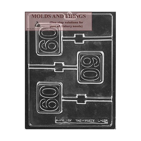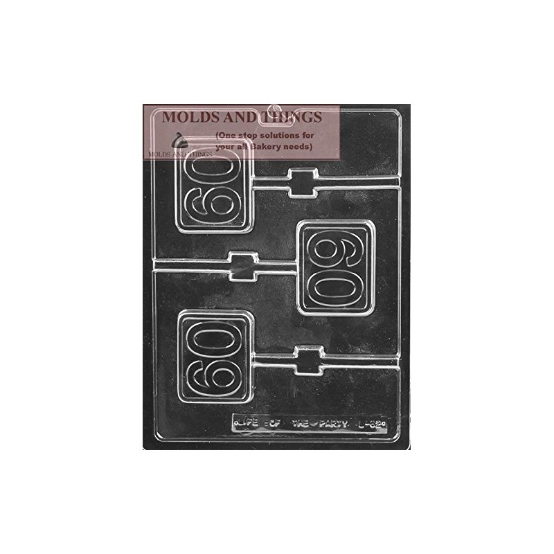 Number 60 plain lolly Chocolate Candy Mold With Candy Making Instruction - set of 3