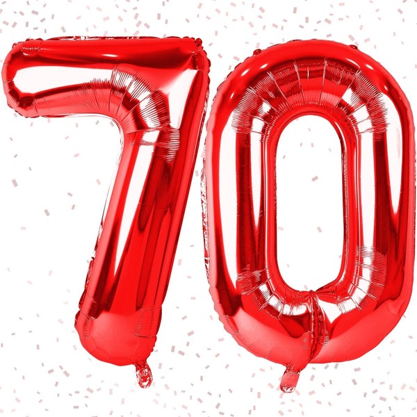 Number 70 Balloons, Red 70 Number Balloons, 40 Inch Red 70 Balloons Self Inflating, Large Foil Mylar Helium Red Digit Balloons for 70nd 7th Birthday Anniversary Party Decoration