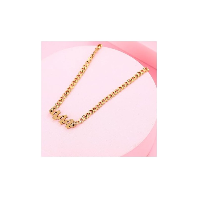 Number Bracelet for Women, Stainless Steel Number Pendant Bracelet Dainty Number Charm Anklet Bracelet Adjustable Link Chain Jewelry Bracelet (Golden, One size)
