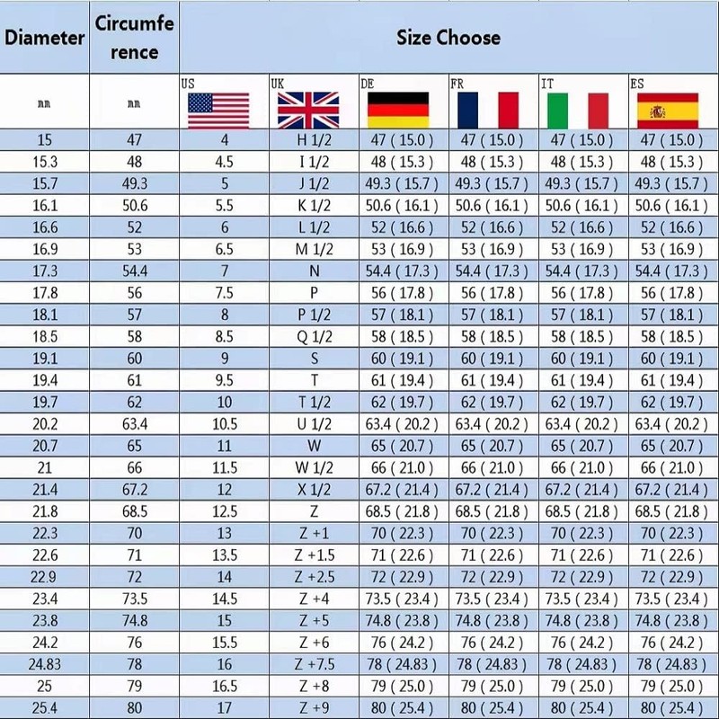 - Ring Size: If you don't know your ring size, we recommend that you visit your local jeweller or use a professional tool to measure your finger and refer to our ring size chart to avoid unnecessary returns or exchanges