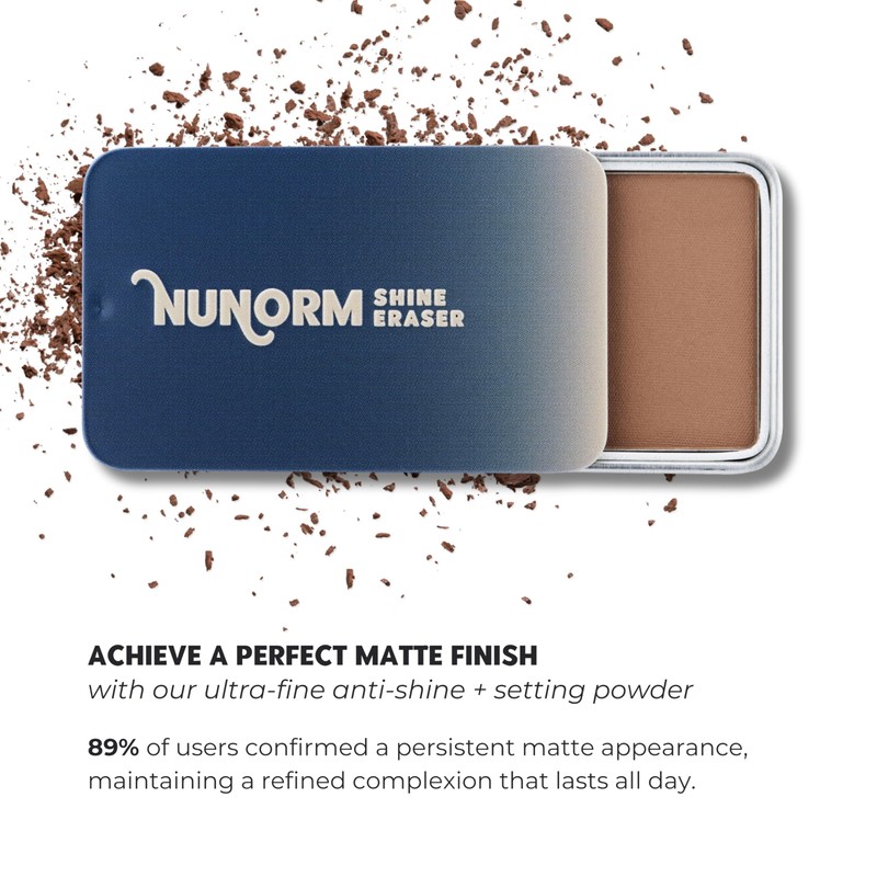 - Achieve a shine-free complexion with NuNorm's Shine Eraser. This pressed powder is expertly formulated to cater specifically to men's skin, offering multiple benefits in one convenient product.