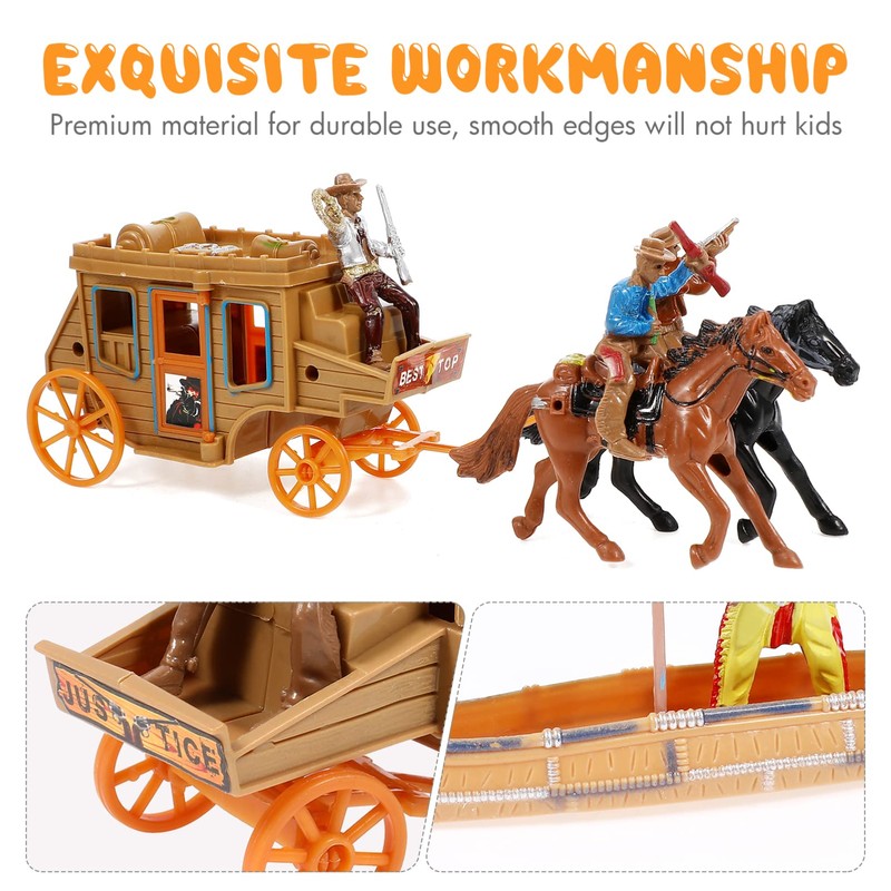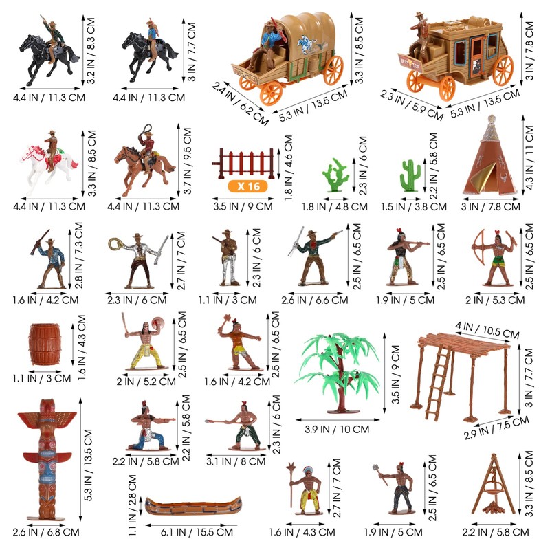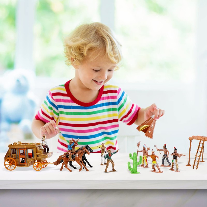 This product is made of high-quality plastic materials, practical, durable for long-term use, not easily deformed or fade, children can use them to study knowledge of cowboys and Indians and improve their colour recognition ability and hand skills.