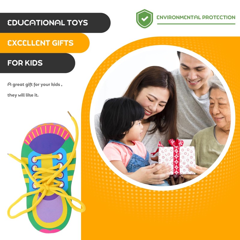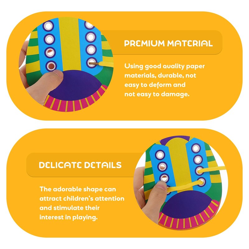- Lacing Shoes Early Education Teaching Aid: The shoelace threading teaching aid is designed with bright colors, and the cute shape can attract children's attention and stimulate their interest in playing