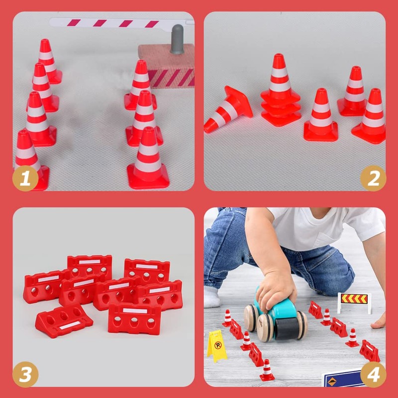 - These mini cones and fences can be used for early transportation education for children and match various toy scenes. Simulated traffic signs to improve kids safety awareness.