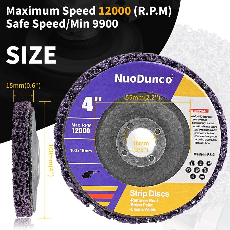 - 【Angle Grinder Paint Removal Disc】Strip Wheel Paint Removal Disc suitable for angle grinders of 100mm, Quick striping disc for Faster and Effective removes rust, dirt, paint, weld spatter, scaling, oxidation and other surface contaminates