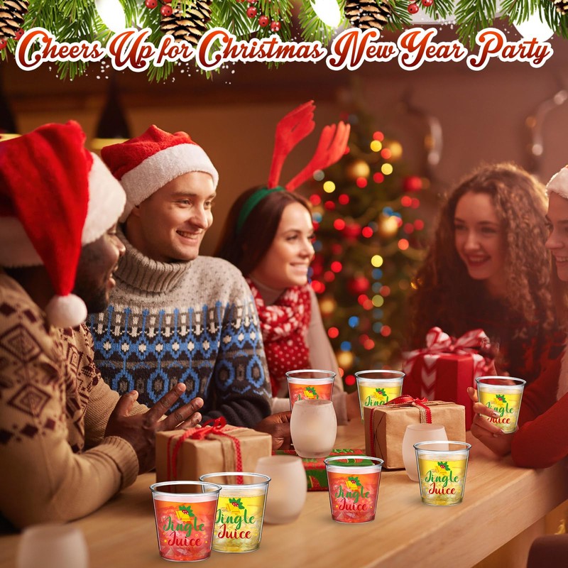Nuogo 100 Pcs Disposable Christmas Shot Glass Bulk, 2.87oz Plastic Clear Holiday Cocktail Glasses Mini Shot Cups Decorations for Christmas New Year Party Gifts Idea Drinkware Supplies