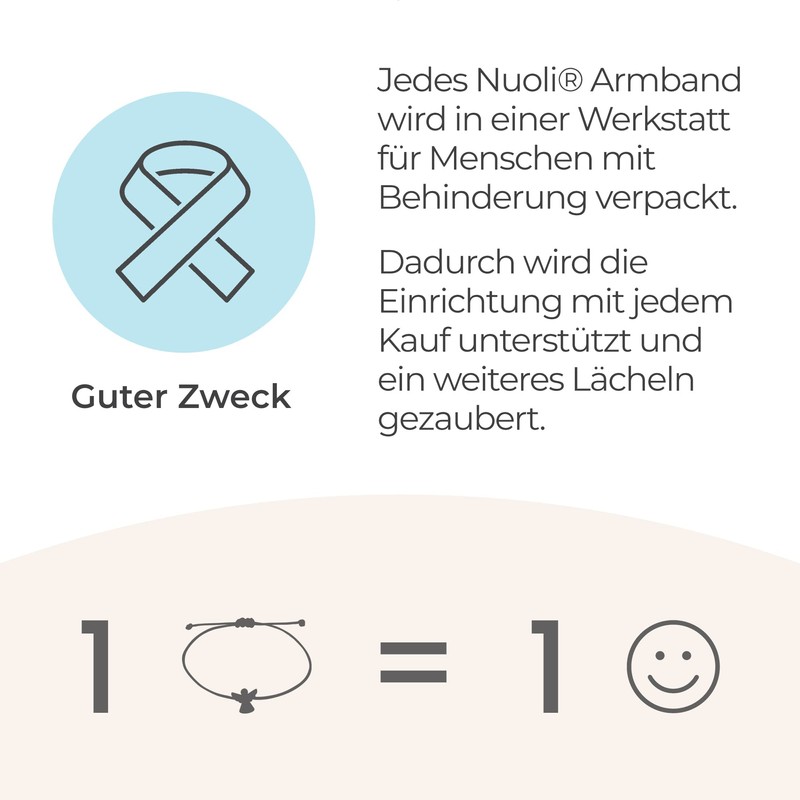 - Good purpose - The bracelet with heart is packed with love in a workshop for people with disabilities in Munich. This supports the social institution and puts smiles on many faces