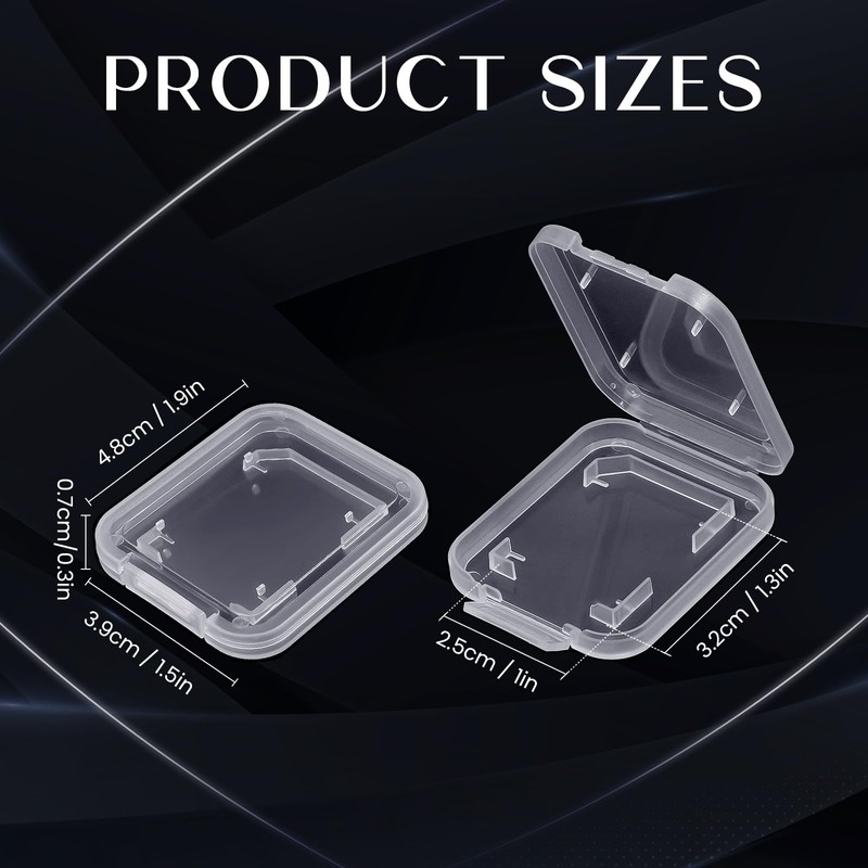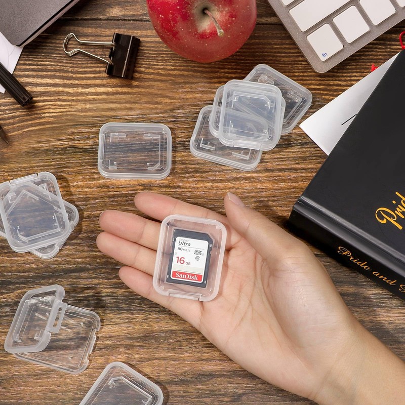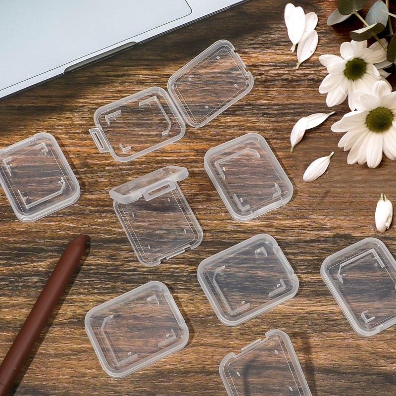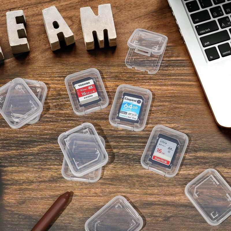 - Clear plastic container for SD cards. Easy carry cards in pocket, convenient.
