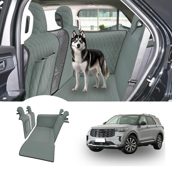 nuoozy Dog Car Seat Cover for Back Seat Compatible with Ford Explorer 2020 2021 2022 2023 2024 Detachable Washable Backseat Pet Travel Hammock Cushion (Black Green)