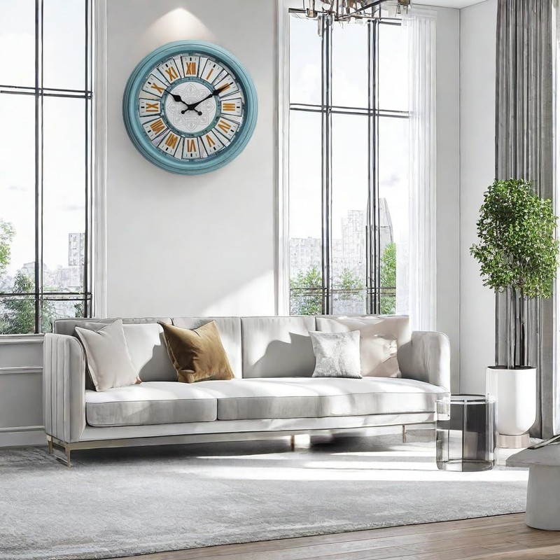 - Living Room Clock Classic appearance, 14 inches, with a simple blue frame and clear reading of large Roman numerals. Hollow design, a great decoration for homes and offices, is the best gift for family or friends and is also suitable for the elderly or people with poor eyesight