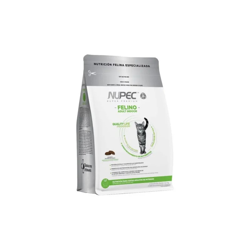 El alimento Nupec Felino Adulto Indoor de 3 kg está diseñado para satisfacer las necesidades nutricionales de gatos adultos que viven en interiores. Su fórmula avanzada proporciona una dieta equilibrada que favorece la salud general y el bienestar de tu mascota.