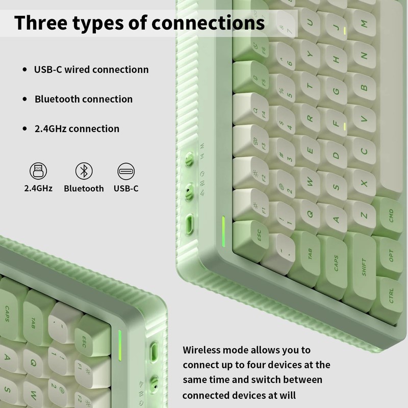 - 【Multiple Connectivity】Halo75 V2 mechanical keyboard supports Bluetooth/2.4GHz/USB-C connectivity and is compatible with macOS/Windows/Linux/Android/iOS. Wireless mode allows you to connect up to four devices at the same time and switch between the four devices at will, allowing you to go from office to gaming with ease.