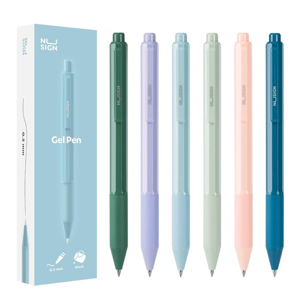 NUSIGN Gel Pens, 6 Pcs 0.5mm Black Ink Pens Fine Point Smooth Writing Pens, High-End Pens for Journaling Note Taking, Cute Office School Supplies Gifts for Adults