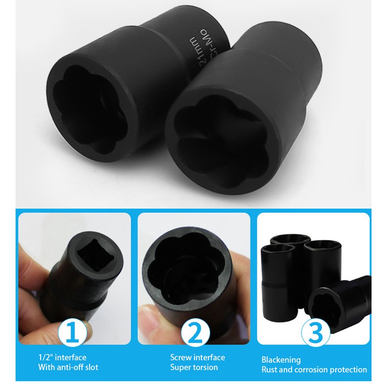 1、Large depth spiral twisted pattern, suitable to remove rusty hex socket screws, high hardness, labor‑saving. 2、Spiral interface for super torsion, diverse specifications allow working in different situations, improve work efficiency. 3、Widely used in the construction industry, auto repair industry, home maintenance, etc. 4、Chrome‑molybdenum steel forging, overall secondary high temperature quenching, more durable, scratch‑resistant, anti‑rust. 5、Made of chromium molybdenum steel material, corrosion‑resistant, wear resistance, greatly improving the service life, durable and easy to remove damaged nuts.